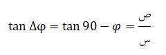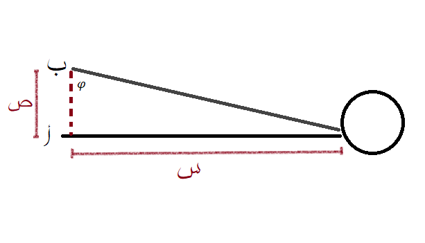 والآن تأمل معي هذا الرسم التوضيحي، ستلاحظ أنه بانتقالك من الموضع أ إلى الموضع ب فإن الزاوية تغيرت بعد أن كانت قائمة، وقيمة الزاوية الجديدة يمكننا الحصول عليها من العلاقة: